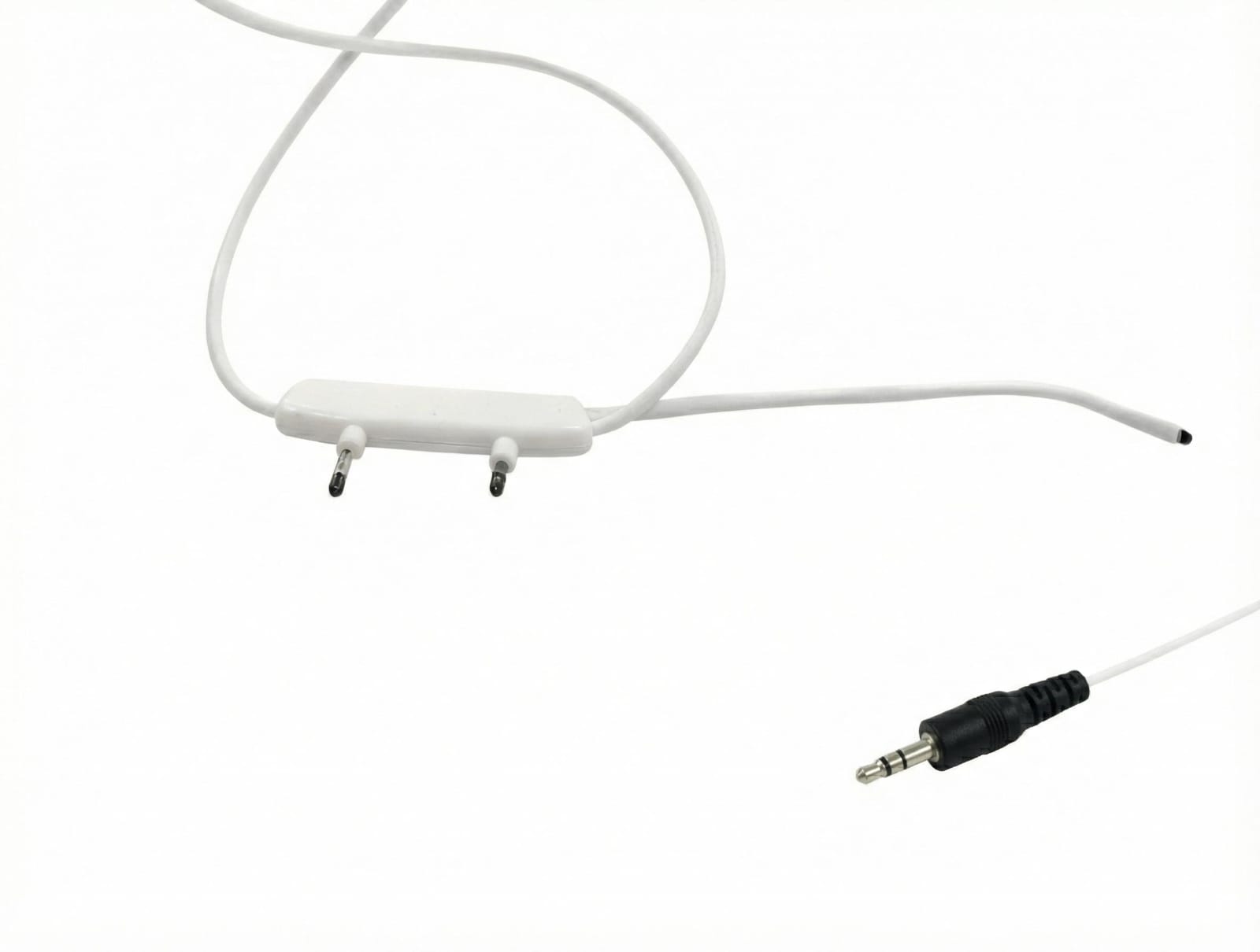 The Thermistor Flow Sensor is designed for adult use and is fully compatible with PDX systems. It features three or four heat-sensitive elements that are positioned beneath the patient’s nostrils. These elements detect temperature variations caused by inhaled and exhaled air during respiration, generating a signal that is directly proportional to these changes.